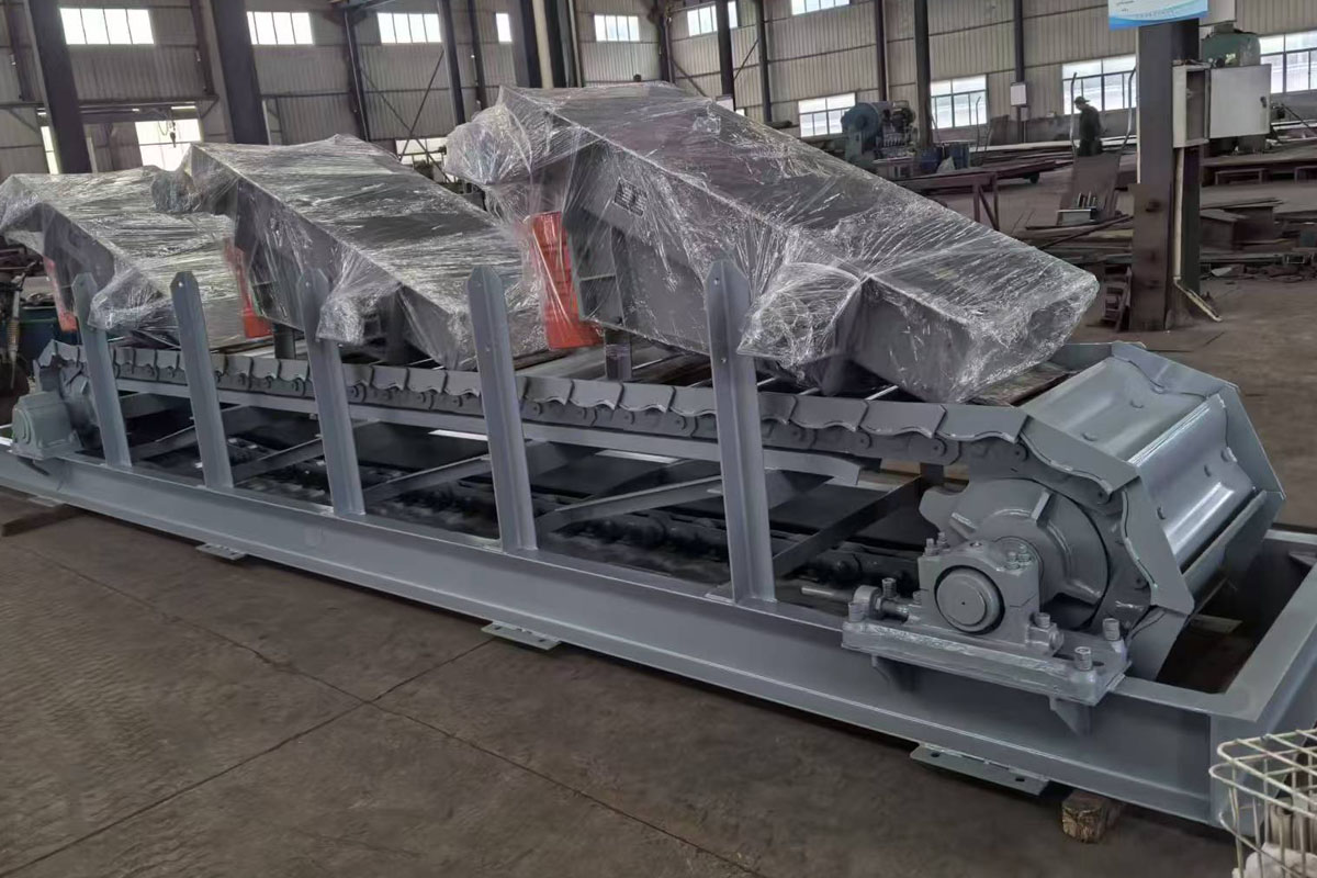 中型板式給料機是一種廣泛應用于礦山、建材、冶金等行業的連續或間歇輸送設備,主要用于將塊狀或松散物料從貯料倉輸送至破碎機、輸送機等設備。中型板式給料機其工作原理是通過電機驅動減速器,經偏心機構、棘爪、棘輪等部件實現鏈板間歇或連續運動,完成物料輸送。