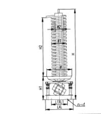 當上振式垂直輸送機進行工作時,根據雙振動電機自同步原理,由振動電機產生激振力,從而強迫整個輸送塔體作水平圓運動和向上垂直運動的空間復合振動。受輸送槽的作用使得螺旋槽內的物料作勻速拋擲圓運動,并沿輸送槽體向上運動,從而完成物料的向上(或向下)輸送作業。