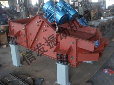 直線震動篩為雙振動電機驅動,利用振動電機激振的原理工作。當兩臺電機作同步、反向旋轉時,其偏心塊所產生的振動力在平行于電機軸線的方向相互抵消,在垂直于電機軸的方向疊為一合力,因此篩機的運動軌跡為一直線。兩電機軸相對篩面在垂直方向有一傾角,在振動力和物料自重力的聯合作用下,使物料在篩面上被拋起跳躍式向前作直線運動,以合理匹配篩網達到篩分的目的。
